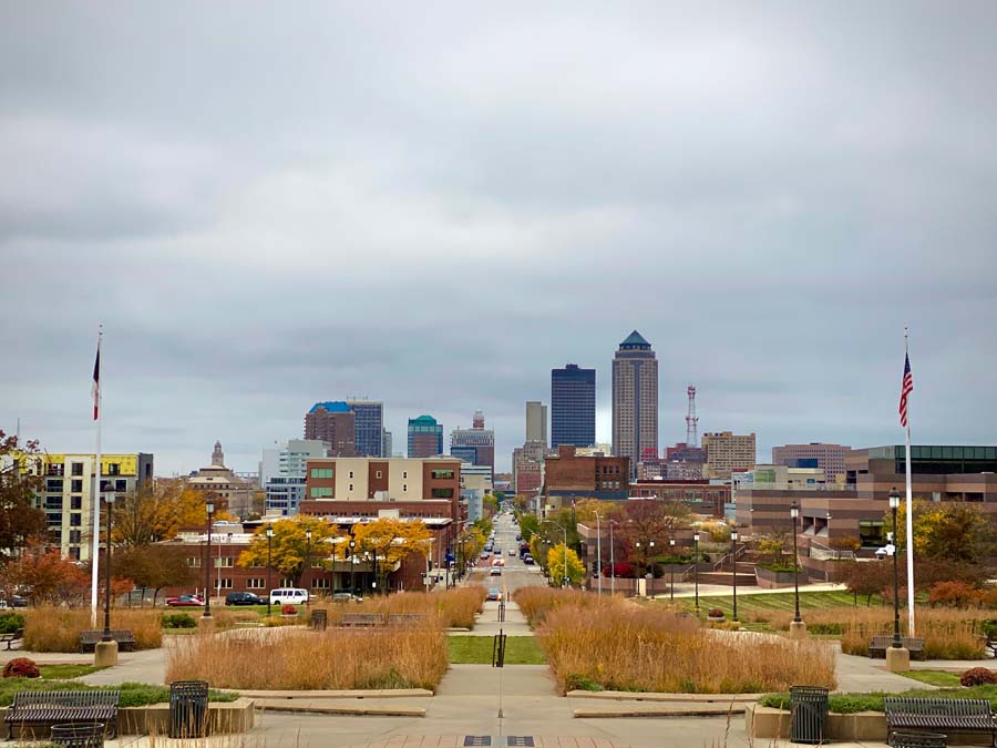 Des Moines, the capital city of Iowa, is a hidden gem. Downtown is where the city’s heartbeat resonates. It’s a vibrant blend of history, culture, and modernity. Unfortunately, the weather was overcast that day, as these photos attest.